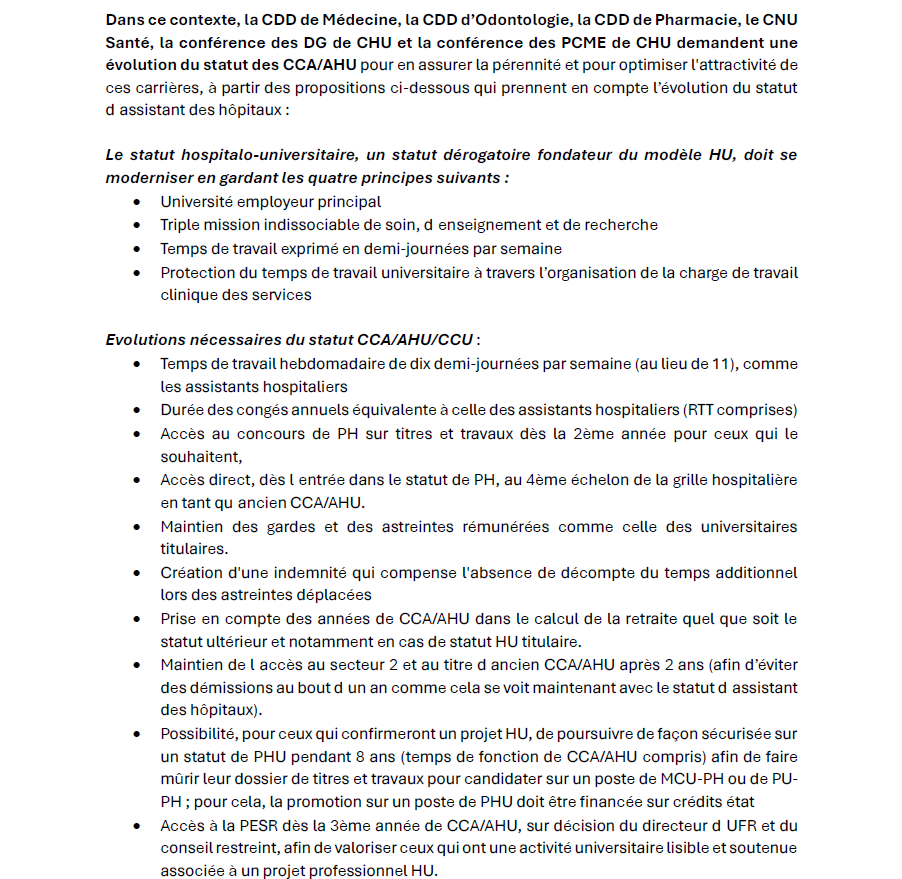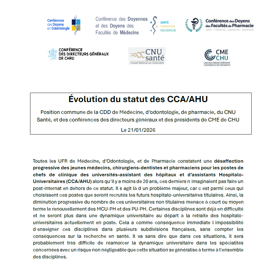 Position de la CDD sur l’évolution du statut des CCA/AHU